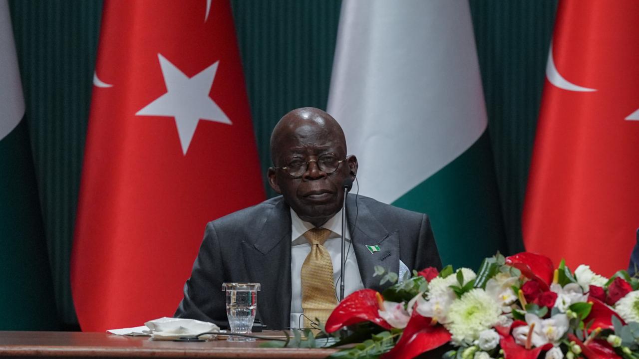 Türkiye’yi ziyaret eden Nijerya Cumhurbaşkanı Tinubu, Cumhurbaşkanı Recep Tayyip Erdoğan ile Cumhurbaşkanlığı Külliyesi’nde görüşmesinin ardından düzenlenen ortak basın toplantısında…