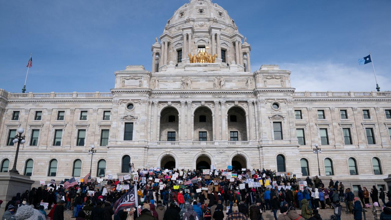 Minnesota eyaletindeki gösterilerde ise halk, Amerikan ve Meksika bayraklarıyla eyaletin Kongre binası önünde bir araya geldi.