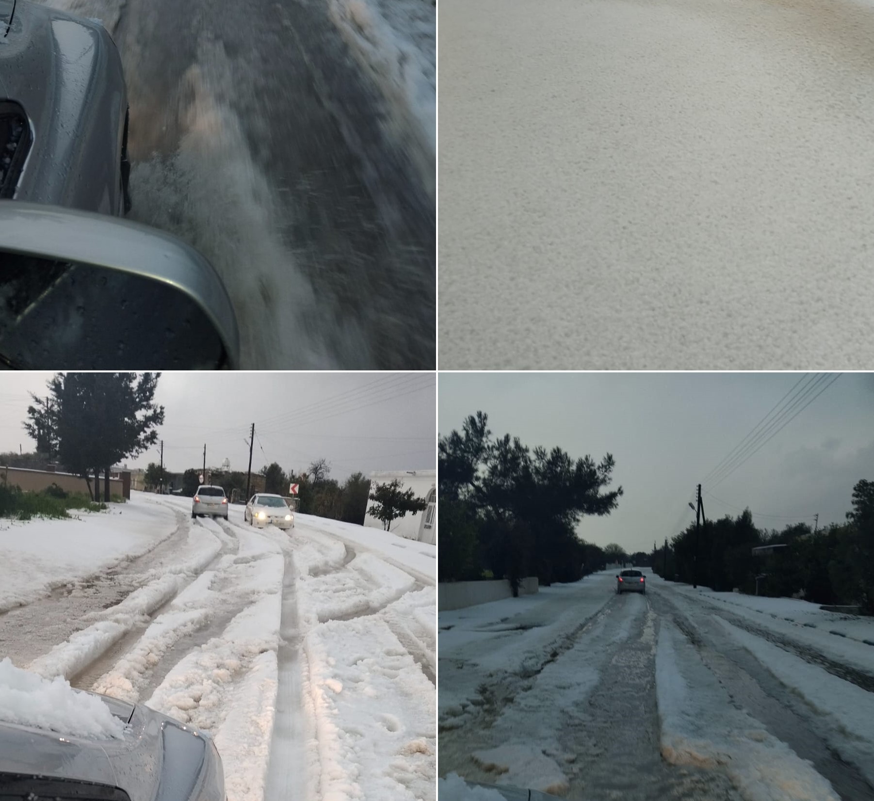 Kuzey Sahil Yolu’nun Mersinlik-Kaplıca arası ile İskele-Karpaz ana yolunun Yeşilköy-Erenköy güzergahları arasında meydana gelen dolu yağışı nedeniyle buzlanma meydana geldi.