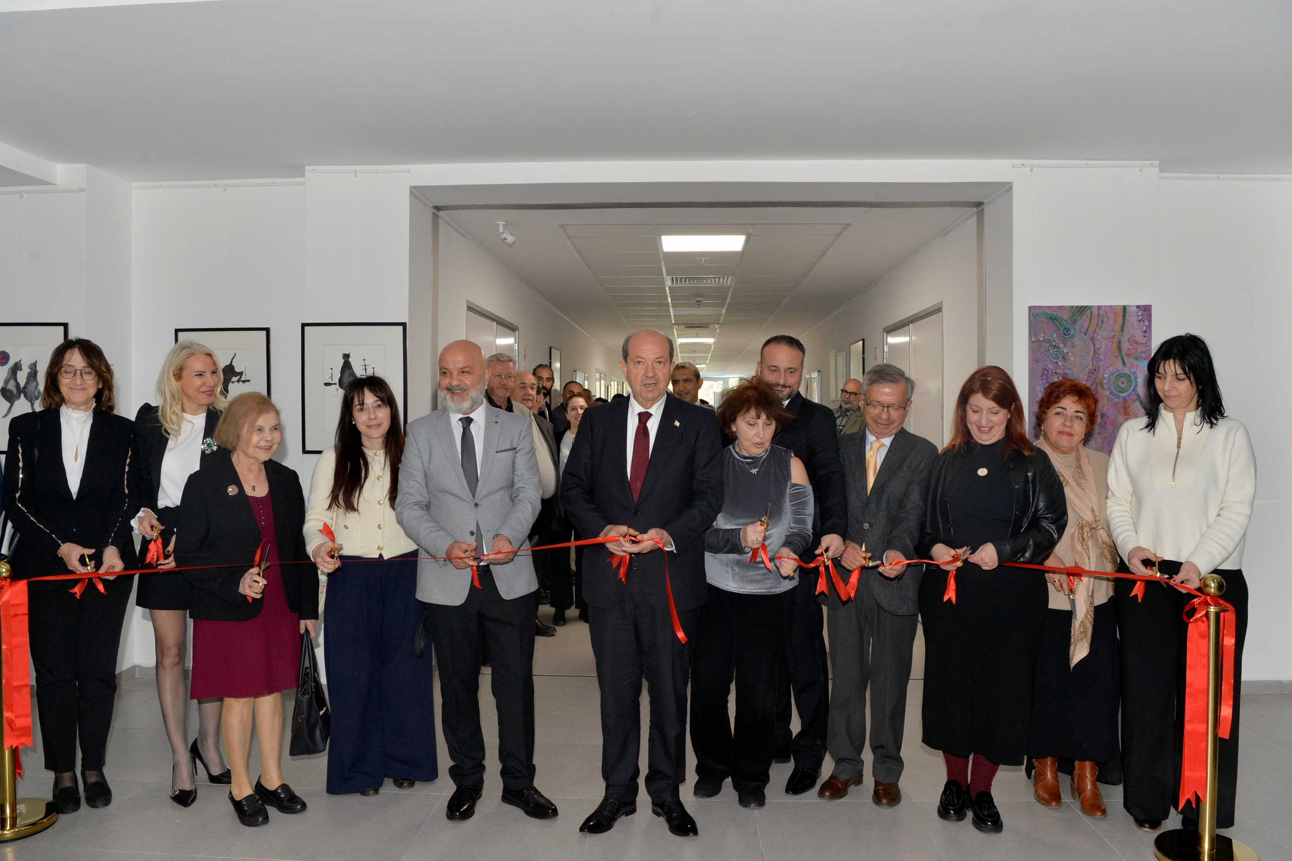 Cumhurbaşkanı Ersin Tatar, İrfan Günsel Kongre Merkezi Sergi Salonu’nda yer alan resim, heykel, seramik ve baskı resim eserlerinden oluşan “8 Mart Dünya Kadınlar Günü Sergisi” açılış törenine katıldı.