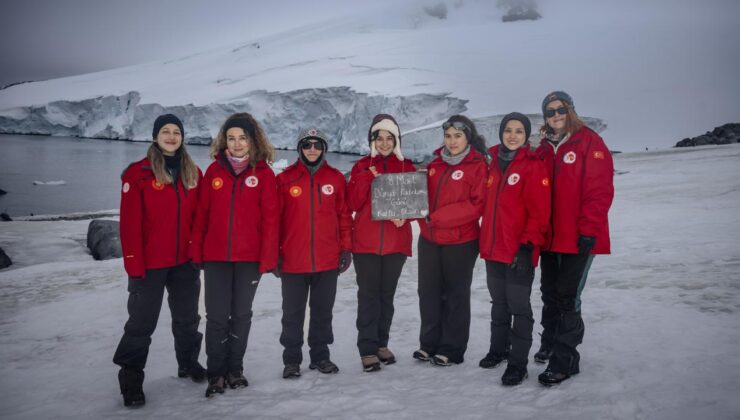 Antarktika’da önemli çalışmalara imza atan kadınlar, “merak”, “özgürlük”, “yaşam”, “ışık”, “mücadele”, “dirayet” ve “kalp” sözcüklerini kara tahtaya yazarak mesajlarını tüm dünyaya iletti.