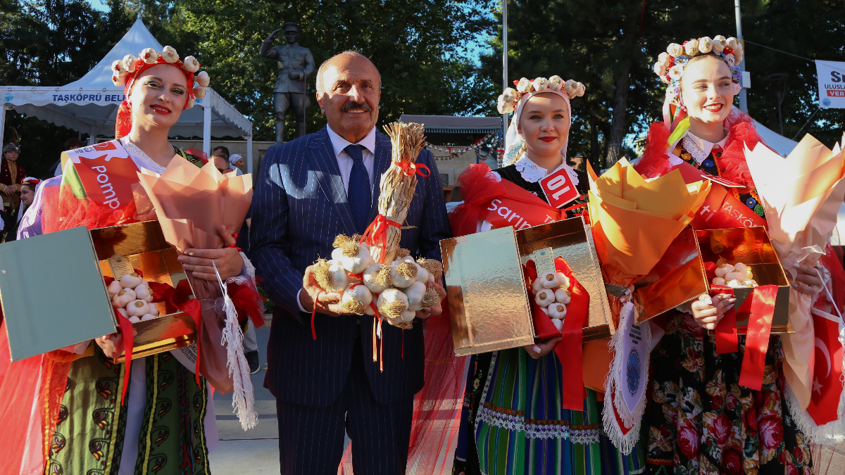 Taşköprü’deki Uluslararası Kültür ve Sarımsak Festivali’nde, 6 ülkeden gelen yöresel kıyafetli kadınlar güzellik yarışına katıldı.