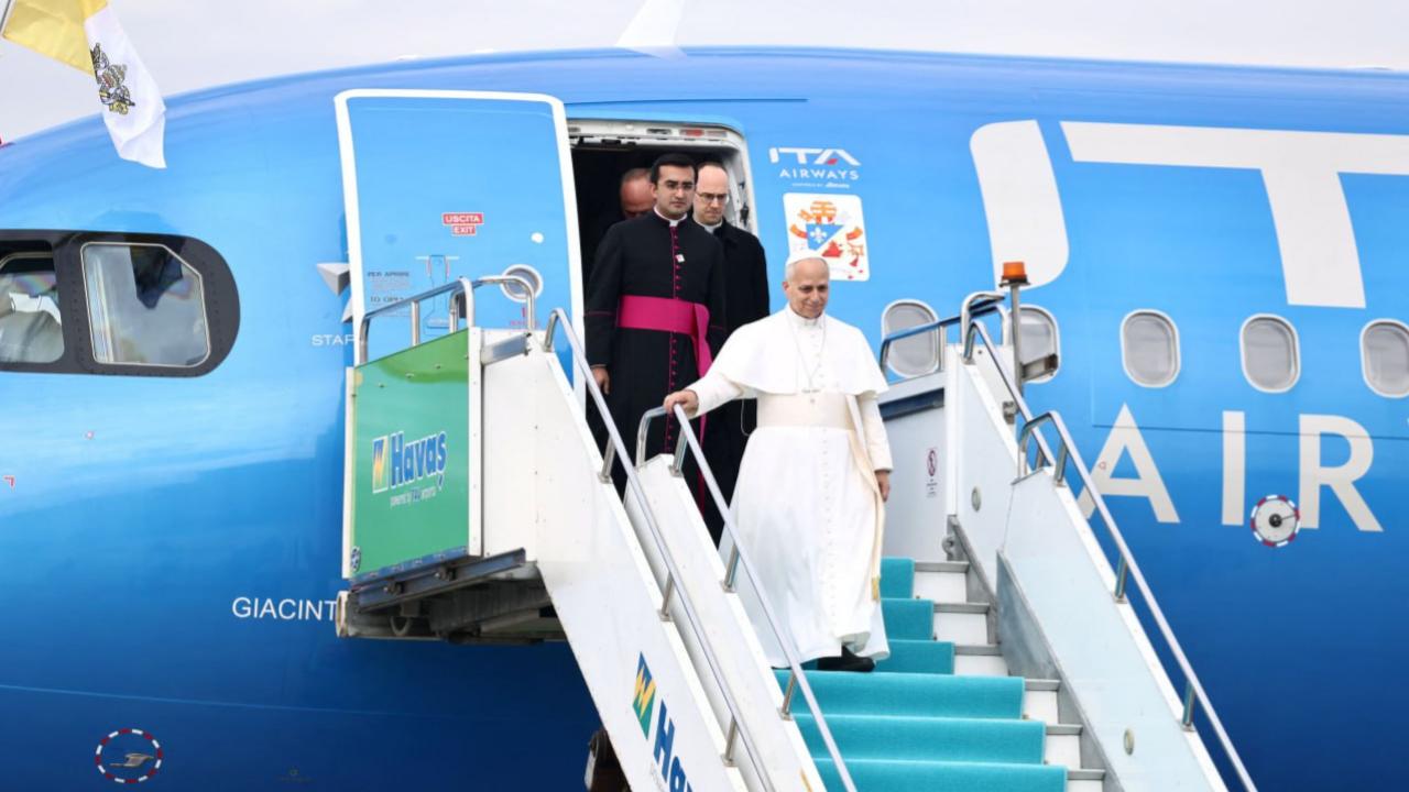 Papa 14. Leo’yu taşıyan uçak, 12.23’te Ankara Esenboğa Havalimanı’na indi. Papa 14. Leo, havalimanında Kültür ve Turizm Bakanı…