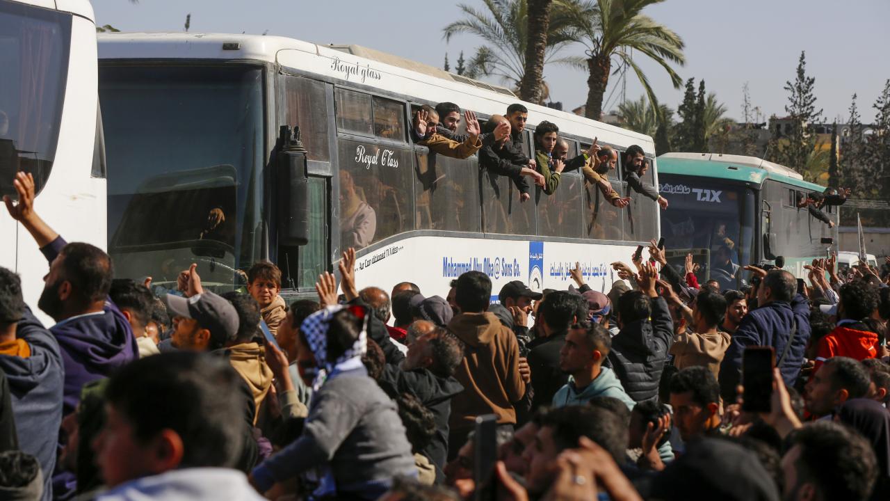 İsrail’in Ofer Askeri Cezaevi’nden serbest bırakılan Filistinli esirleri taşıyan otobüs, Uluslararası Kızılhaç ekiplerinin eşliğinde Ramallah kentindeki Kültür Sarayı’na ulaştı.…
