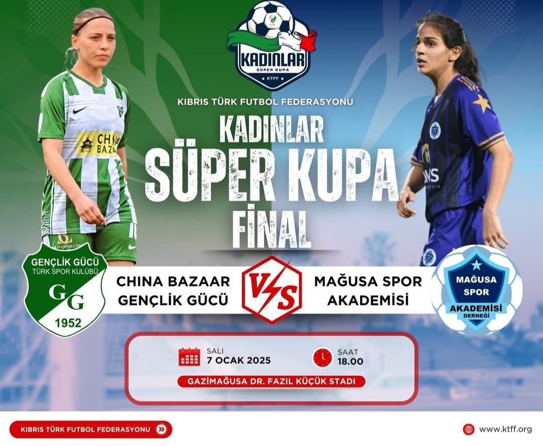 (BRTSPOR) Futbolda “Kadınlar Süper Kupa” maçı bu akşam oynanacak.Geçen sezonun şampiyonu China Bazaar Gençlik Gücü ile ikinci sırada tamamlayan Mağusa…