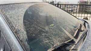 Kaya parçaları düştü, minibüsün tavanı parçalandı