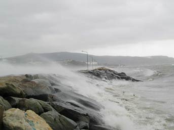Meteoroloji Dairesi, bölgede hem denizde hem de karada, bu gece yarısından yarın 18.00’e kadar kuzey ve doğu yönlerden zamanla etkisini artıran ve saatte 50-61 kilometre hızla esecek fırtınamsı rüzgar uyarısında bulundu.