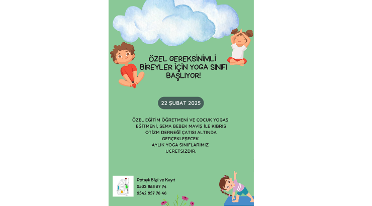 Kıbrıs Otizm Derneği, özel gereksinimli bireylerin bedensel ve ruhsal iyilik hallerini desteklemek amacıyla her ay ücretsiz çocuk yogası dersleri sunmaya başlayacağını duyurdu.