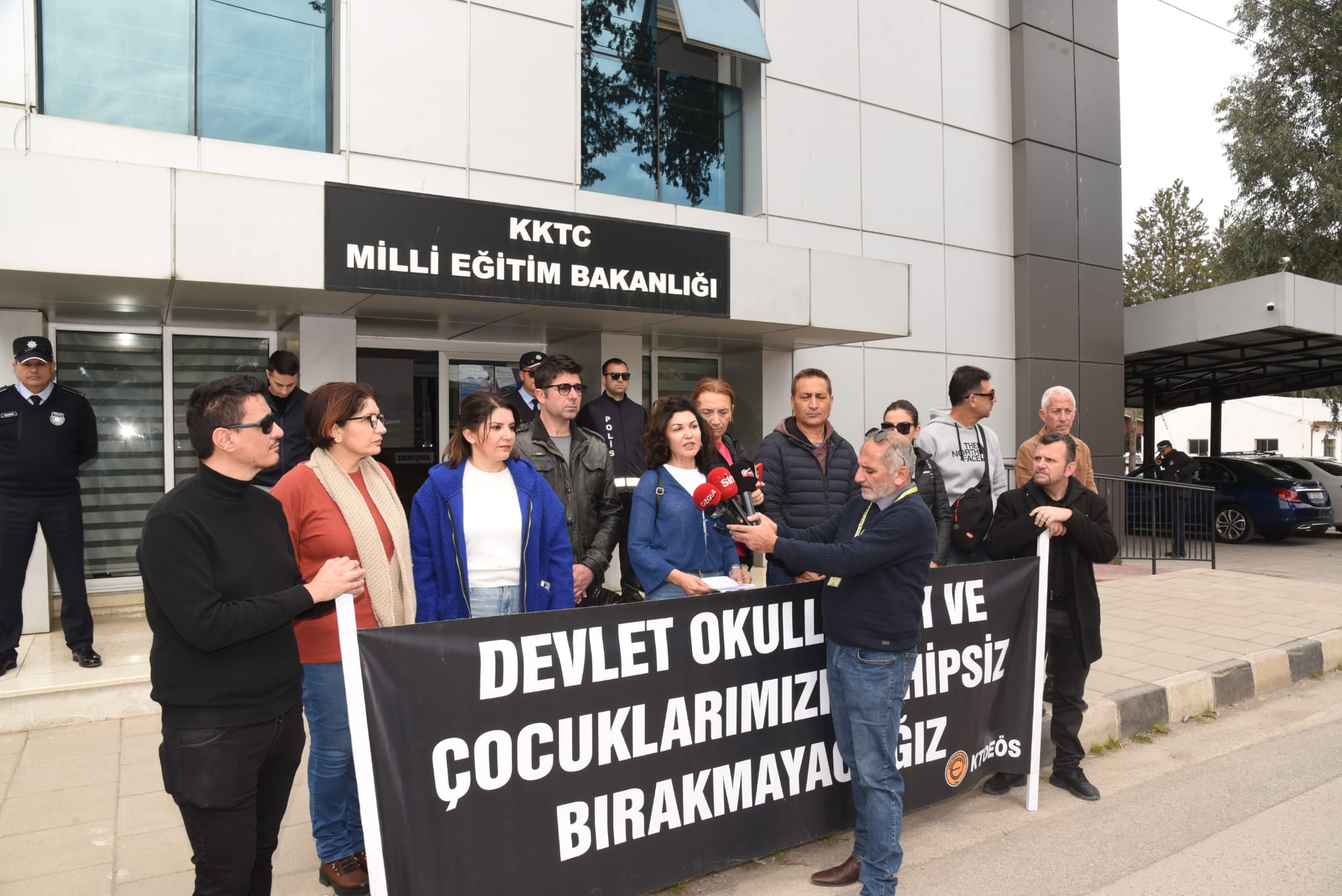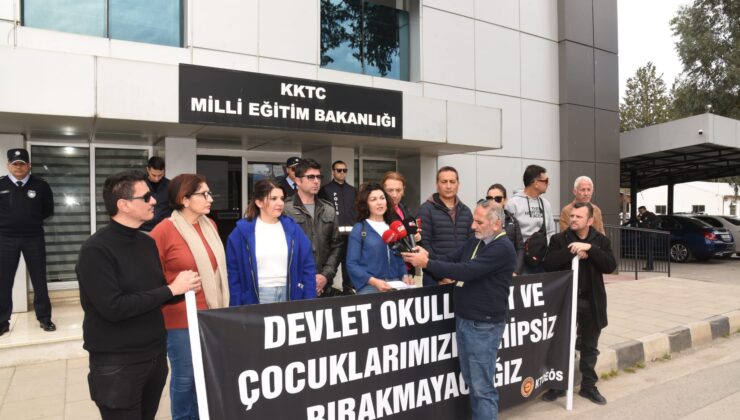 Kıbrıs Türk Orta Eğitim Öğretmenler Sendikası (KTOEÖS) bugün “kamusal eğitimin gözden çıkarıldığı ve devlet okullarına sahip çıkılmadığı” gerekçesiyle Milli Eğitim Bakanlığı’na siyah çelenk bıraktı ve basın açıklaması yaptı.