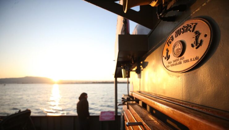 Çanakkale Deniz Müzesi Komutanlığı Yüzer İskelesi’nde demirli bulunan “TCG Nusret (N-16)”, mayınlarını döktüğü rotada ilerledi.