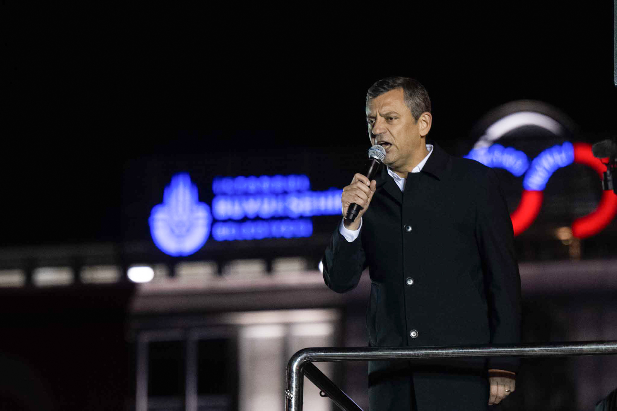 Özel, İstanbul Büyükşehir Belediye (İBB) Başkanı Ekrem İmamoğlu’nun İBB’ye yönelik terör ve örgütlü suçlarla ilgili yürütülen soruşturmalar kapsamında gözaltına alınmasının ardından dün akşam Saraçhane’deki İBB binası önünde otobüs üzerinden vatandaşlara hitap etti.