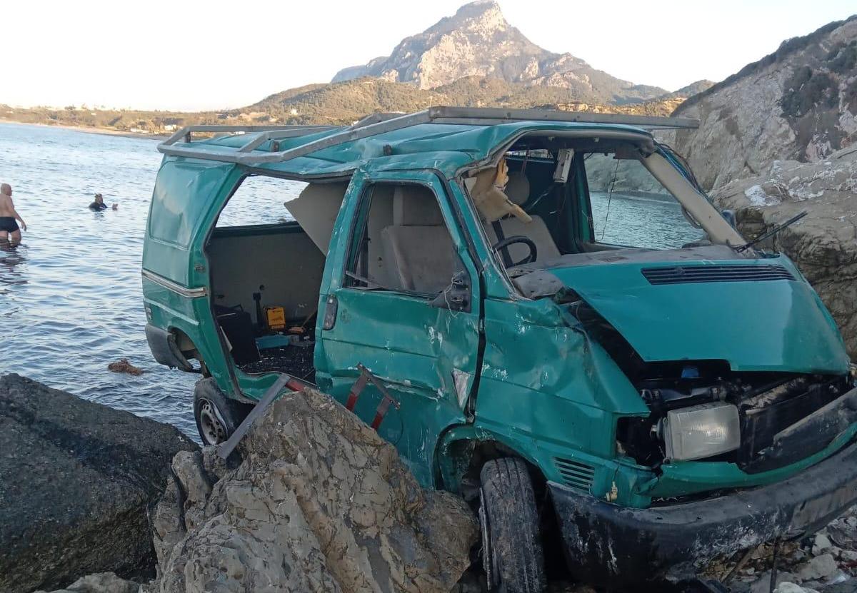 Kaya parçaları düştü, minibüsün tavanı parçalandı