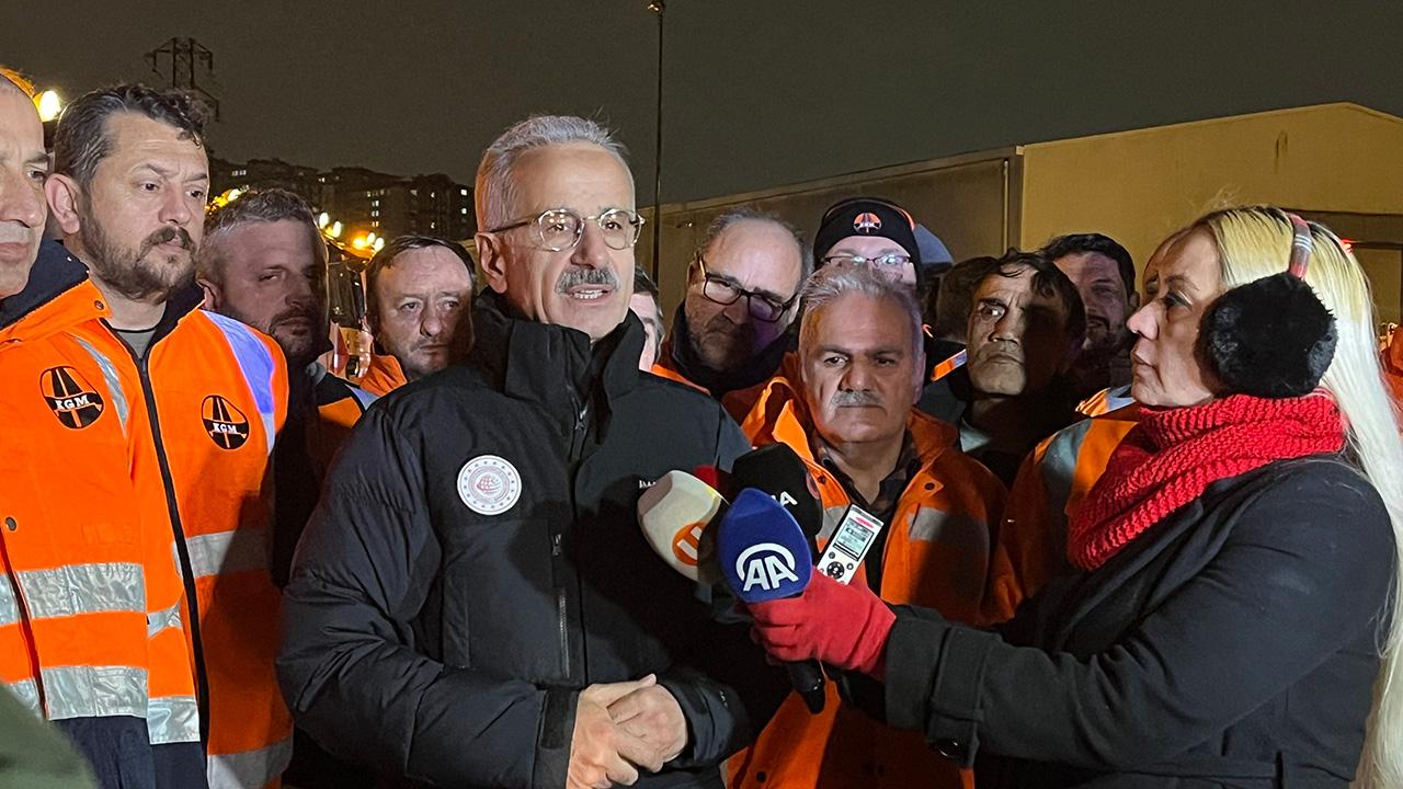 Ulaştırma ve Altyapı Bakanı Abdulkadir Uraloğlu, İstanbul’da karla mücadelede alınan önlemlerden bahsetti. Uraloğlu vatandaşları da kar lastiği konusunda uyardı: Mutlaka kış lastiğini takmaları, trafiği yakından takip etmeleri, uyarılarımıza uyarak seyahat etmelerini bekliyoruz.